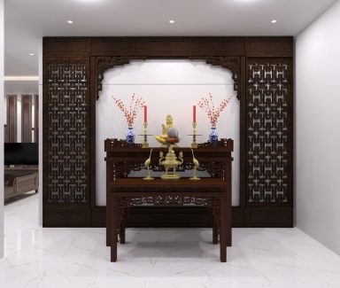 Tầng 3: Phòng thờ, sân phơi, sân thượng kết hợp tiểu cảnh thư giãn